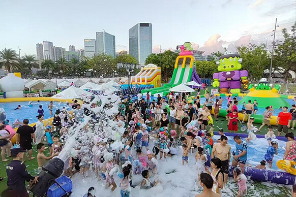 The factory is self-operated, integrating R&D, production, sales and service. It supports customization of various amusement equipment, including water challenges, water toys, water slides, water floats, inflatable water yachts, inflatable castles, inflatable emergency protection outdoor tents, rescue tents, and cartoon display inflatable models.